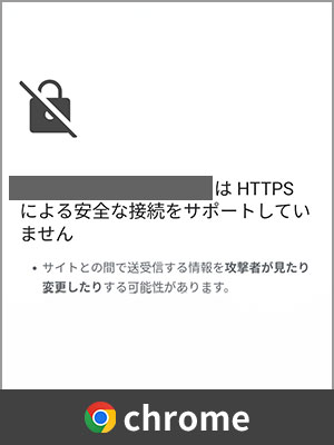 URLが表示されるアドレスバーに「保護されていない通信」「安全ではありません」「この接続ではプライバシーが保護されません」という警告が表示されている場合もあります。