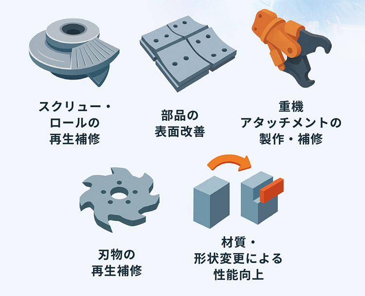 対応できる部品のイメージがつきやすいようイラストを使用し、リマンの対象や適用範囲を視覚的に分かりやすく伝えています。また、イラストを用いることで、難しい事業内容であっても硬すぎる印象を与えず、親しみやすく感じていただけるデザインになっていると思います。