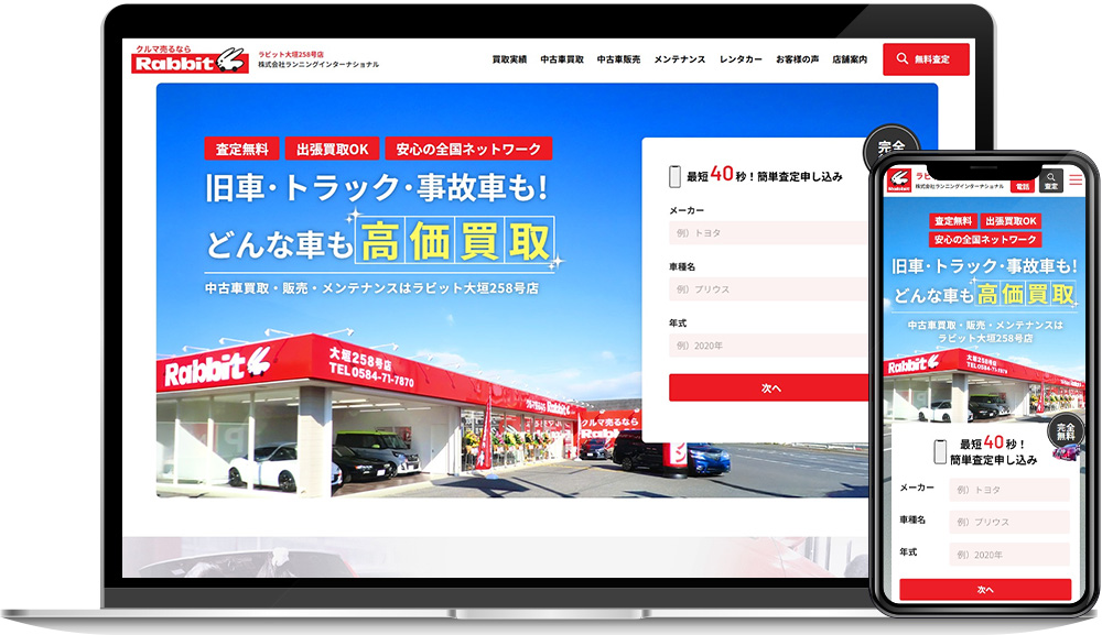 戻る WORKS 株式会社ランニングインターナショナル 様 |サービスサイト 大垣を拠点にカーライフを支える、中古車買取・販売・メンテナンス店 https://running-intl.jp/ ご依頼時の状況とご要望 strategy ご提案と戦略 CREDIT クレジット クライアント 株式会社ランニングインターナショナル 様 エリア 岐阜県大垣市 公開日 2026年4月 業種 運送業・自動車 制作物 サービスサイト 目的 Web集客 URL https://running-intl.jp/ OTHERS その他の制作実績 運送業・自動車 株式会社OTK 様 PPC広告・Web集客・システム開発 運送業・自動車 株式会社クワバラボディワークス 様 Web集客 運送業・自動車 有限会社海津運送 様 Web集客・求人対策 運送業・自動車 ABCキャンパー 様 PPC広告・Web集客 運送業・自動車 株式会社YAMAI 様 PPC広告・Web集客 運送業・自動車 株式会社YAMAI 様 Web集客 制作実績一覧